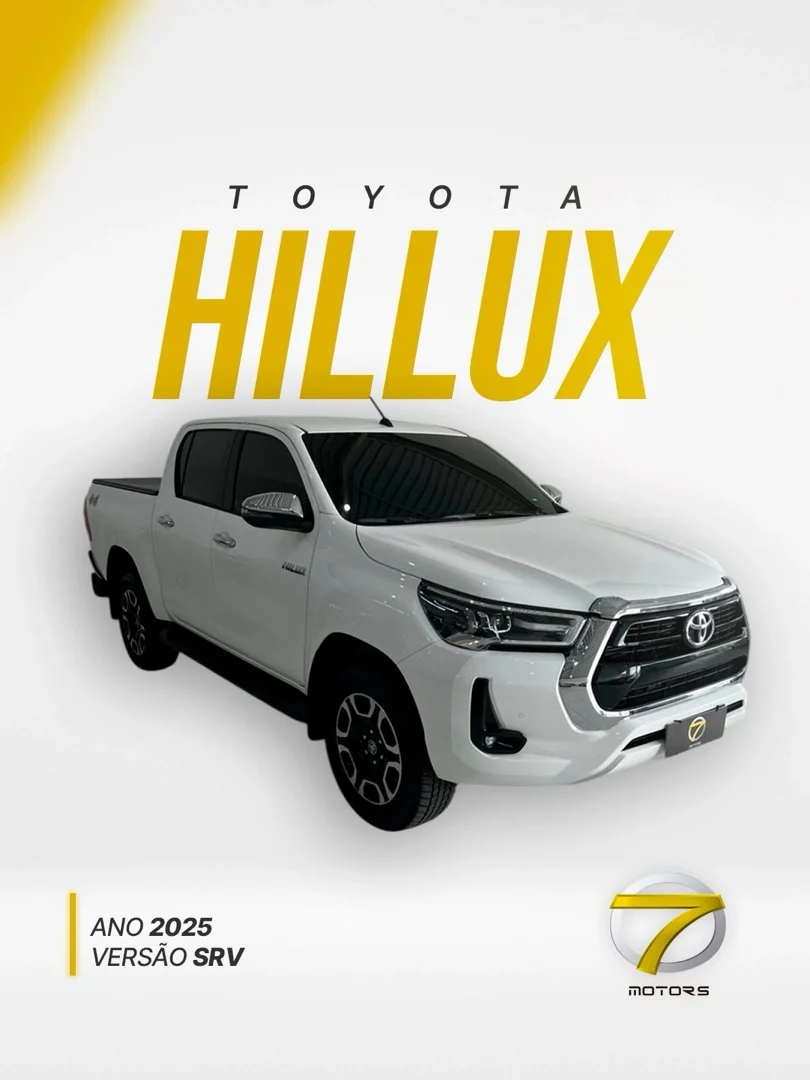 Hillux SRV 2025 Contatos: Lucas - (87) 99647-2613 João - (87) 99931-5054 Outros Opcionais: Assistente de Partida em Rampa, Comando de áudio no volante, Controle de estabilidade, Distribuição eletrônica de frenagem, Farol de neblina, Kit Multimídia, MP3 Player, Pára-choques na cor do veículo, Porta-copos.