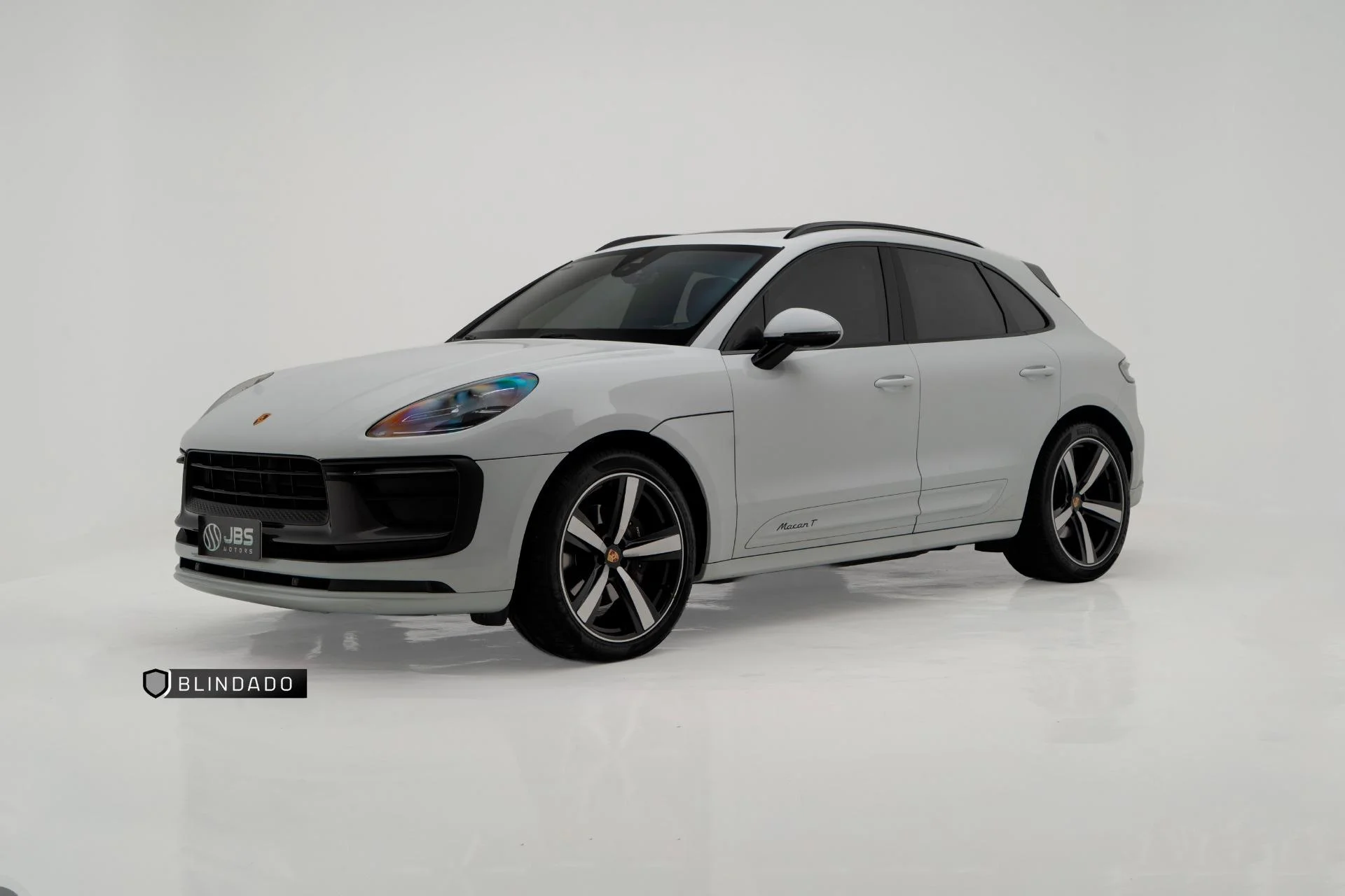 Garantia de fábrica. Blindagem nível IIIA com vidros Select e garantia de dez anos. Cor Branco Carrara Metálico com pacote de couro estendido em preto e vermelho bordô. Rodas esportivas Exclusive Design, suspensão pneumática adaptativa com gerenciamento ativo, faróis traseiros de LED escurecidos, cintos em vermelho bordô e sistema de som Surround BOSE. Configuração exclusiva com sideblades Macan T e acabamento SportDesign.