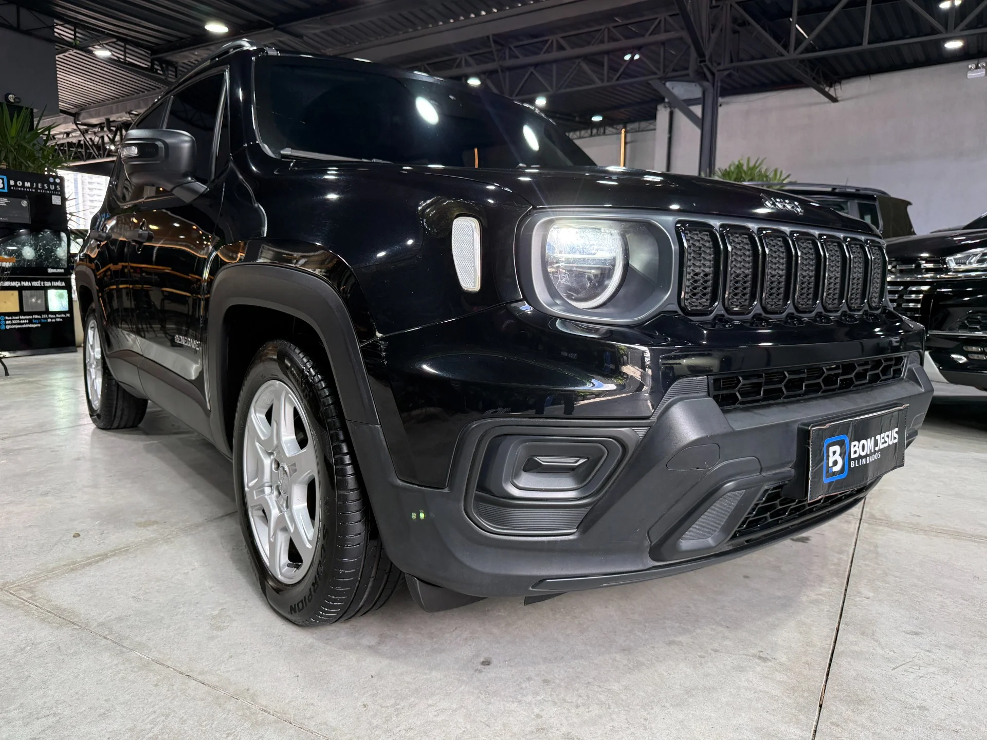 BLINDADO Jeep Renegade Sport Flex 2024 13.000KM Blindado Nível III-A Vidros Definitivos R$169.888,00 Outros Opcionais: Banco bi-partido, Comando de áudio no volante, Controle de estabilidade, Direção Elétrica, Distribuição eletrônica de frenagem, Kit Multimídia, Pára-choques na cor do veículo.